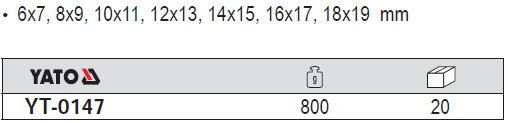 Bộ cờ lê 2 đầu miệng hệ mét YT-0147 là sản phẩm mang thương hiệu Yato, được sản xuất theo tiêu chuẩn Ba Lan .