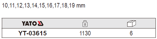 Bộ cờ lê vòng miệng 10 chi tiết 10-19mm Yato YT-03615 Bộ cờ lê vòng miệng 10 chi tiết 10-19mm Yato YT-03615