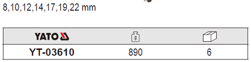 Bộ cờ lê vòng miệng YT-03610 là sản phẩm mang thương hiệu Yato, được sản xuất theo tiêu chuẩn Ba Lan .