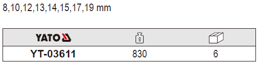 Bộ cờ lê vòng miệng YT-03611 là sản phẩm mang thương hiệu Yato, được sản xuất theo tiêu chuẩn Ba Lan .