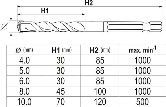Bộ mũi khoan vạn năng thương hiệu YATO YT-44789, nhờ thiết kế đặc biệt của xoắn ốc cho phép khoan trong hầu hết tất cả các vật liệu - kim loại, bê tông, nhôm, gốm sứ, gỗ và nhựa. • Lưỡi cacbua vonfram YG6X có độ cứng 89-91 HRC • Thân mũi khoan có độ cứng 42 cạn 45 HRC • Hình dạng xoắn ốc tăng tốc loại bỏ các mảnh vụn • Hiệu quả, bền và chống hư hại và cùn • Tay cầm hình lục giác HEX 1 / 4ʺ (6.3 mm) sử dụng cho tua vít không dây và cờ lê tác động.