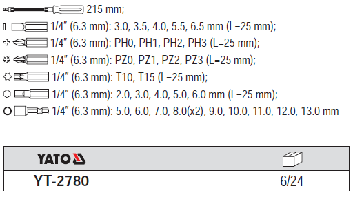 Bộ tua vít dẻo đa năng 1/4 inch 31 chi tiết Yato YT-2780 Bộ tua vít dẻo đa năng 1/4 inch 31 chi tiết Yato YT-2780