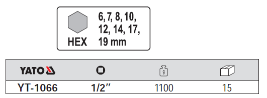 Bộ tuýp 1/2 inch lục giác 8 chi tiết YT-1066 làm bằng hợp kim CrMo SCM-440 có độ bền cao. Chuyên dụng cho việc sửa chữa trục, ổ đĩa hay hộp số....