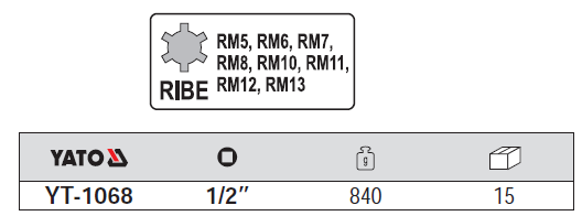 Bộ tuýp 1/2 inch mũi hoa khế 8 chi tiết YT-1068 là một trong những công cụ không thể thiếu trong bộ trang thiết bị dụng cụ sửa chữa tại nhà máy, công ty hoặc xưởng cơ khí, sửa chữa tại gia đình, v.v… với chức năng chính là giữ và xoay các đai ốc, bu lông.