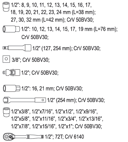 Bộ tay vặn tổng hợp 1/2" là một trong những công cụ không thể thiếu trong bộ trang thiết bị dụng cụ sửa chữa tại nhà máy, công ty hoặc xưởng cơ khí, sửa chữa tại gia đình, v.v… với chức năng chính là giữ và xoay các đai ốc, bu lông.