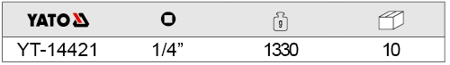 Bộ tuýp tay vặn 1/4" YT-14421 là sản phẩm mang thương hiệu Yato Ba Lan, được sản xuất theo tiêu chuẩn Châu Âu, đạt chất lượng ISO 9001:2008.