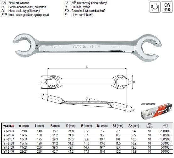 Cờ lê 2 đầu miệng là sản phẩm mang thương hiệu Yato, được sản xuất theo tiêu chuẩn Ba Lan .