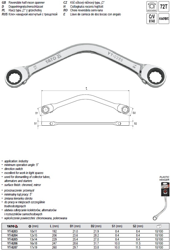 Cờ lê 2 đầu vòng bán nguyệt có chốt khóa YT-0283 là sản phẩm mang thương hiệu Yato - Ba Lan, được sản xuất theo tiêu chuẩn Châu Âu .