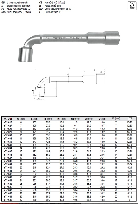 Cờ lê điếu chữ L 2 đầu lục giác YT-1626 là sản phẩm chất lượng cao được sản xuất dưới sự giám sát chặt chẽ về chất lượng sản xuất theo tiêu chuẩn CE.