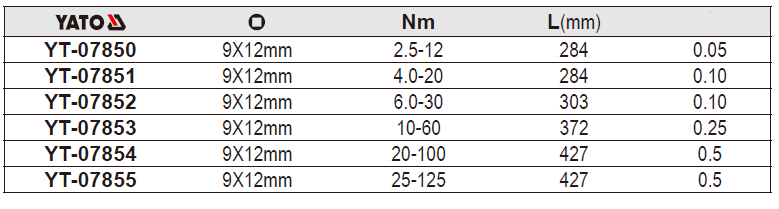 Cờ lê lực đầu rời điều chỉnh lực xiết 9x12mm 4-20Nm YT-07851