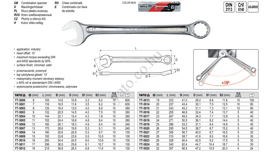 Cờ lê vòng miệng hệ mét Yato YT-5000