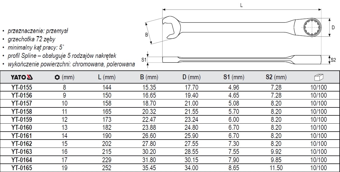 Cờ lê vòng miệng tự động tháo nhanh (dạng bóng) YT-0155 là sản phẩm mang thương hiệu Yato, được sản xuất theo tiêu chuẩn Ba Lan .
