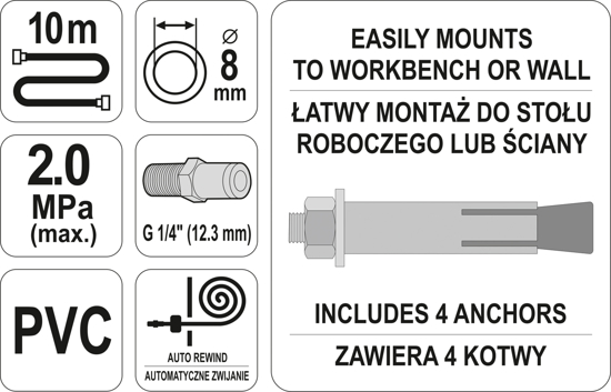 Thông số kỹ thuật Dây hơi tự rút 8mm-10m YT-24242