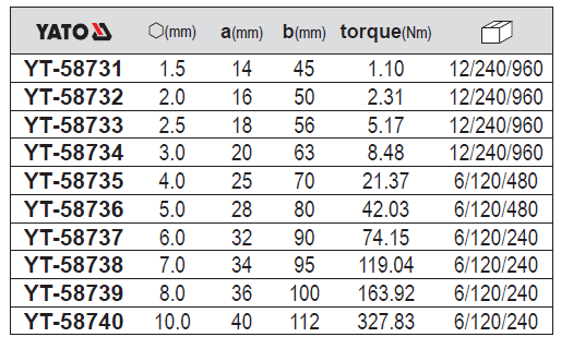 Lục giác đầu bi YATO YT-58731 là sản phẩm chất lượng cao được hãng Yato sản xuất dưới sự giám sát chặt chẽ về chất lượng đạt tiêu chuẩn trước khi đem ra thị trường.