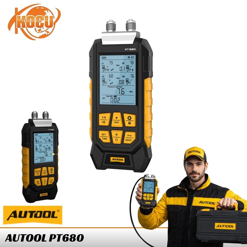 Cấu Tạo Và Nguyên Lý Hoạt Động: AUTOOL PT680 hoạt động dựa trên nguyên lý đo áp suất vi sai trong hệ thống treo khí.