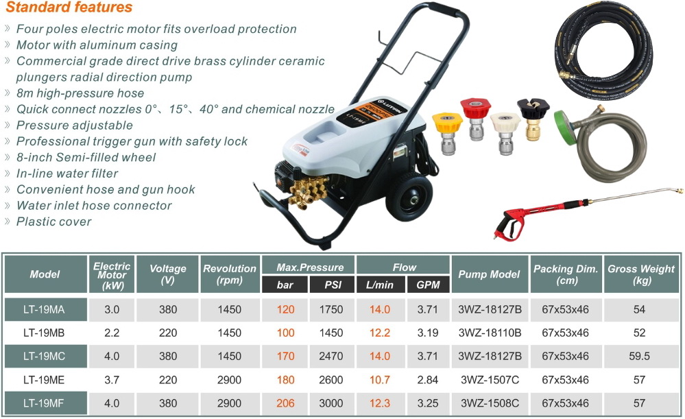 Lutian LT-19MC là dòng máy rửa xe cao áp nổi bật với khả năng làm sạch mạnh mẽ, đáp ứng nhu cầu sử dụng đa dạng cho các hộ gia đình, tiệm rửa xe chuyên nghiệp và các ngành công nghiệp.