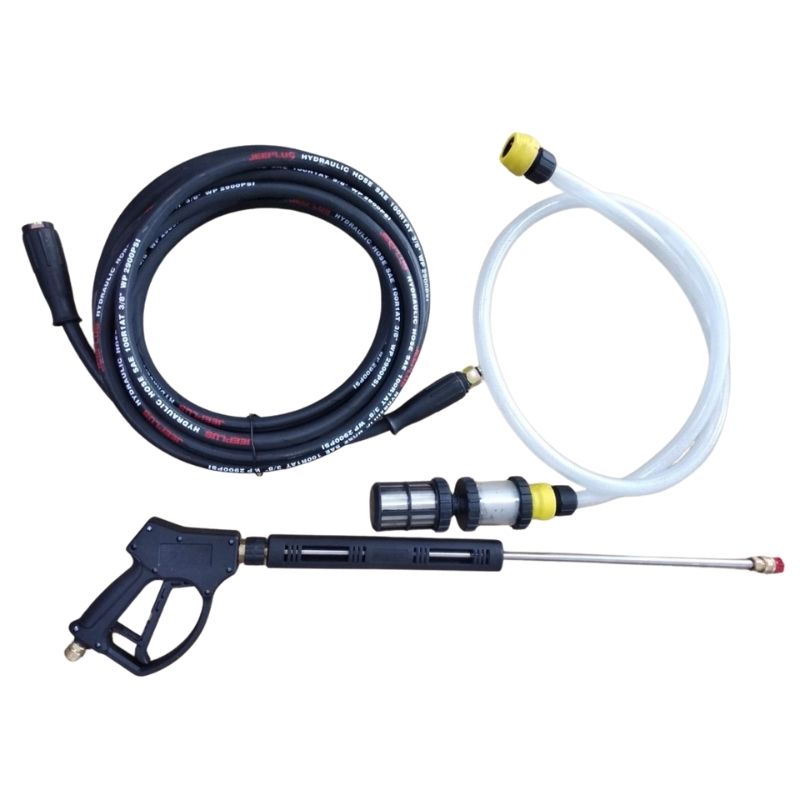Phụ kiện kèm theo máy: dây cao áp, súng cao áp, dây lọc nước, béc phun