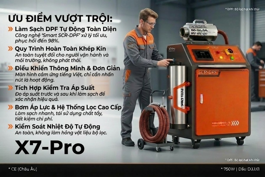 Máy vệ sinh bầu lọc khí thải DPF SCR X7Pro – giải pháp tối ưu giúp gara tăng doanh thu, khách hàng hài lòng, tiết kiệm chi phí tối đa. Sở hữu ngay hôm nay để nâng cấp dịch vụ và tạo lợi thế cạnh tranh vượt trội!