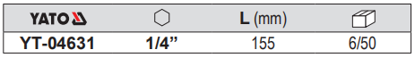 Bộ chuyển đổi góc YATO YT-04631 với bánh răng là không thể thay thế khi làm việc ở những nơi khó tiếp cận. Được làm bằng thép carbon, thân bằng nhựa. Mô-men xoắn cực đại: 13 Nm • Tốc độ tối đa: 400 vòng / phút. Giá đỡ từ HEX, góc nghiêng: 90 °, chiều dài: 155 mm. Thông số Ổ đĩa: HEX