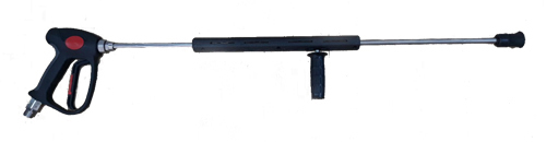 - Súng rửa xe cao áp lớn có tay cầm để hỗ trợ giảm lực, súng còn được thiết kế đầu thẳng một chiều đẩy về tạo cảm giác thuận tay, dễ dàng khi phun rửa so với các loại súng đầu cong.