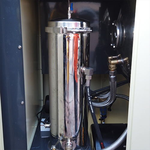 - Toàn bộ hệ thống máy có motor lớn qua hệ thống rơ-le tự ngắt và còn 1 motor nhỏ để cấp nước với 1 bình lọc. Nước được bơm từ bình lọc dẫn lên bình bầu to để lọc. Nhờ khả năng lọc nước qua 4 lần lọc mà có thể sử dụng nhiều nguồn nước khác nhau để làm việc mà không phải bận tâm về chất lượng nguồn nước.