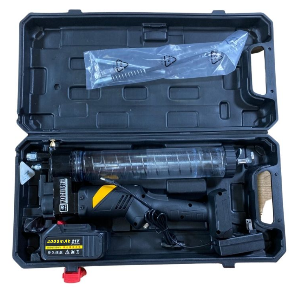 Bạn đang gặp khó khăn khi bơm mỡ bảo dưỡng máy móc, xe tải, máy công trình hoặc thiết bị cơ khí vì các loại súng bơm mỡ bằng tay tốn sức, áp lực yếu và mất nhiều thời gian? Một thiết bị bơm mỡ mạnh mẽ, tiện lợi và có thể sử dụng ở bất cứ đâu sẽ giúp công việc bảo dưỡng trở nên nhanh chóng hơn. Súng bơm mỡ dùng pin KOCU D-714 21V chính là giải pháp tối ưu với áp lực cao, dung tích lớn và thiết kế cầm tay linh hoạt, giúp việc bôi trơn thiết bị trở nên dễ dàng và hiệu quả.