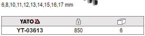 Bộ cờ lê vòng miệng YT-03613 là sản phẩm mang thương hiệu Yato, được sản xuất theo tiêu chuẩn Ba Lan .