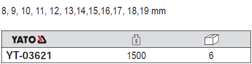 Bộ cờ lê vòng miệng hệ mét YT-03621 là sản phẩm mang thương hiệu Yato, được sản xuất theo tiêu chuẩn Ba Lan .