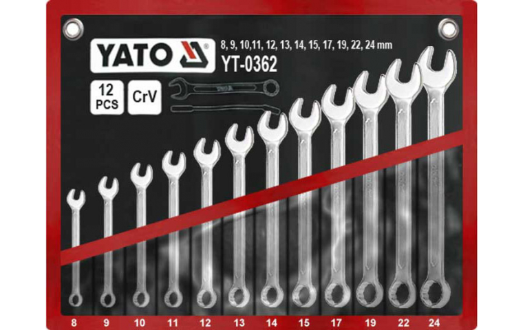 Bộ cờ lê vòng miệng hệ mét 12 chi tiết 8-24mm Yato YT-0362 Bộ cờ lê vòng miệng hệ mét 12 chi tiết 8-24mm Yato YT-0362