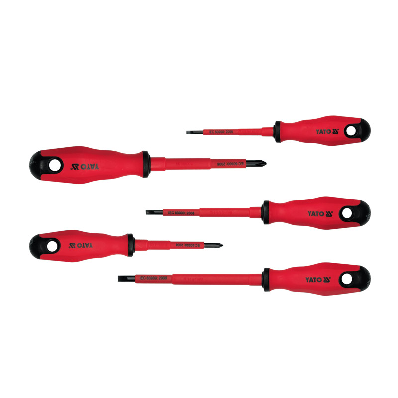 Bộ tua vít cách điện 5 chi tiết đầu 2 cạnh, 4 cạnh Yato YT-2827 Bộ tua vít cách điện 5 chi tiết đầu 2 cạnh, 4 cạnh Yato YT-2827