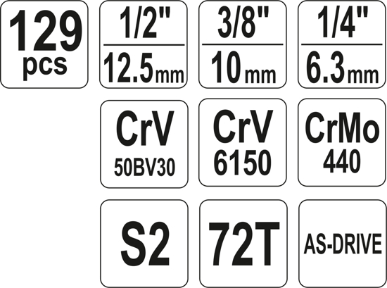 Bộ tuýp tay vặn tông hợp 129 chi tiết Yato YT-38881 Bộ tuýp tay vặn tông hợp 129 chi tiết Yato YT-38881