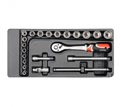 Khay bộ tuýp tay vặn tổng hợp 3/8 inch 22 chi tiết YT-5542 Khay bộ tuýp tay vặn tổng hợp 3/8 inch 22 chi tiết YT-5542