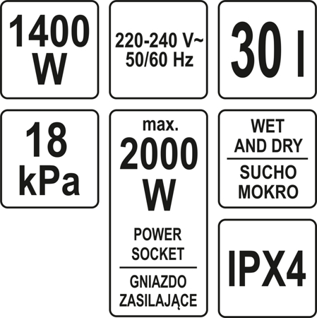 Máy hút bụi 1400W 30L Yato YT-85701 Máy hút bụi 1400W 30L Yato YT-85701